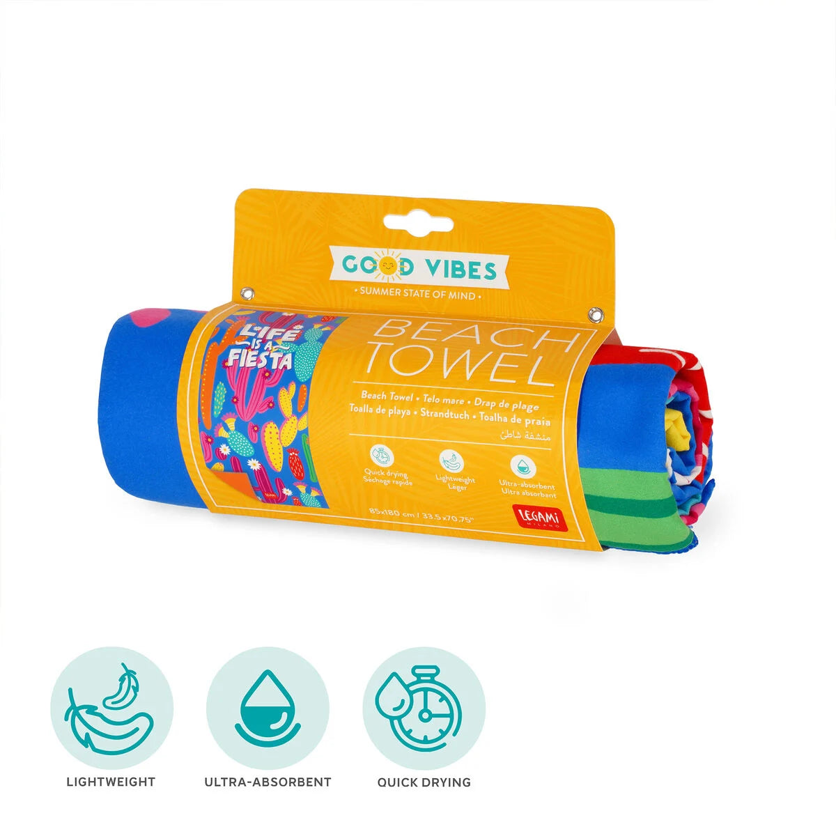 Thin, lightweight and super-stylish. Claim your space on the beach in style with the Legami Beach Towel - Cactus. As practical as it is stylish, the towel is compact, lightweight and double-sided, so it won't be too much to carry. Quick-drying and ultra-absorbent, you'll be able to sunbathe, get lost in your summer read, and soak up the good vibes. Features a fun print on one side, and colour block on the other.