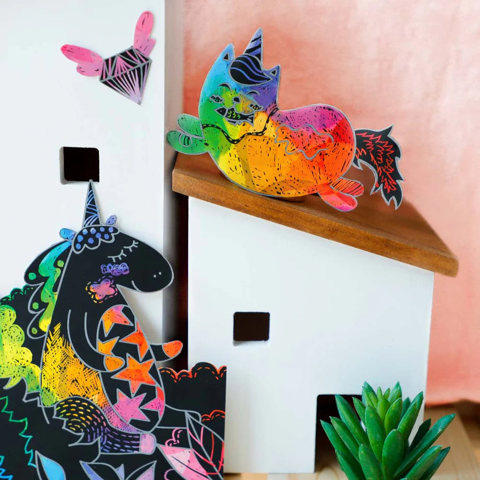 Simply scratch the pre-stencilled black art paper to reveal the colour.