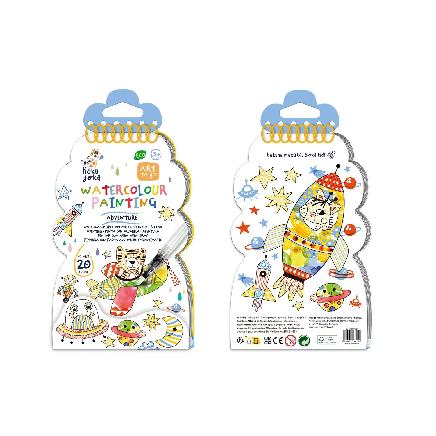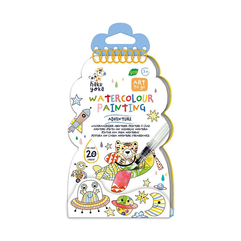 Haku Yoka Watercolour Painting provides children a magical, mess free way to discover the joys of colour! Fill the water pen provided, gently brush the paper sheets, and colour will appear and spread as if by magic! Try pushing the pen softer or harder to control the colour spread. After painting, children can easily tear off pictures along the pre-punched dotted line and then keep their masterpieces or give them to friends and family! Includes 20 sheets and one reusable refillable water pen.